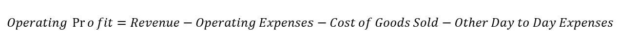 Operating profit is calculated by subtracting operating expenses, the cost of goods sold, and other day-to-day expenses from total revenue. Operating profit measures earnings before financing and government costs. It represents the profit generated from the operations of a company and is reported after revenue and any expenses associated with the operations of the business such as COGS and SG&A. Many companies report it as “operating income” and these terms can be used interchangeably.