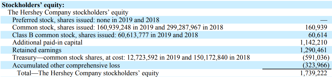 - Hershey issued 160,939,248 shares in 2019