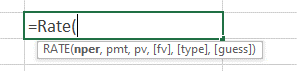 Rate(nper, pmt, pv, [fv], [type], [guess]