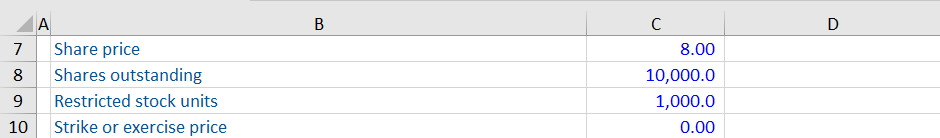 Here is an example of how to calculate the diluted equity value of the company with RSUs.
