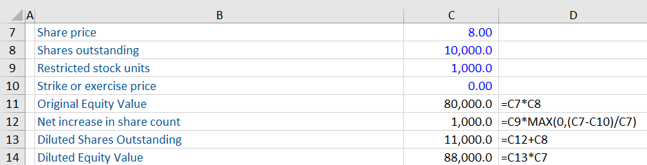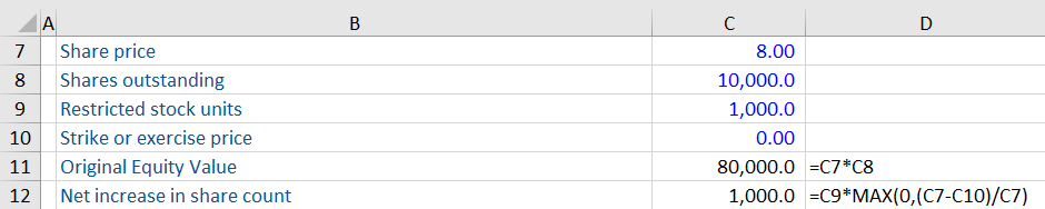 Calculating Net Dilution & Diluted Equity Value Resulting from RSUs