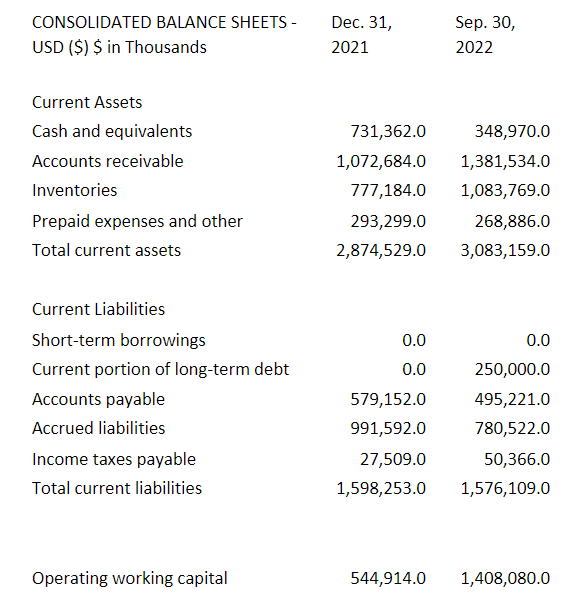 A working capital adjustment ensures that the business being acquired has an adequate level of working capital (current assets minus current liabilities) at closing. The parties usually agree on a target working capital amount, and the purchase price is adjusted up or down based on the difference between the target and the actual working capital at closing. A key issue can be the seasonality of working capital – or more specifically ‘operating working capital’. Lawyers typically only focus on accounts receivable, inventory and accounts payable. Below is the operating working capital for Mattel Inc.: