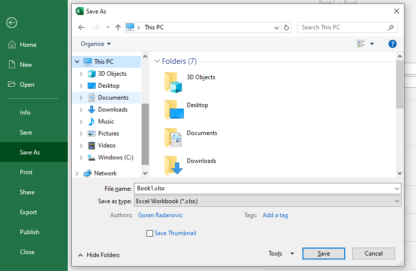The safest system when working on critical work, especially when the file is large, is to save multiple versions using the SAVE AS command. Press Browse, and a window will open for you to select the place where you want to save your worksheet.