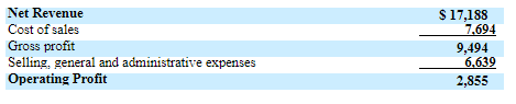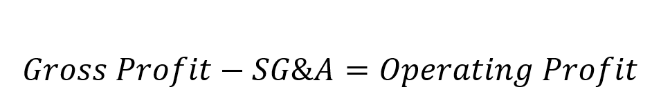 Gross profit minus SG&A costs equals the operating profit of the business. The operating profit shows the amount of money generated from sales minus the costs associated with making the product and supporting the business.