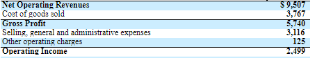 - Pepsi’s operating margin is (2,855 SG&A / 17,188 Sales) x 100 = 17%