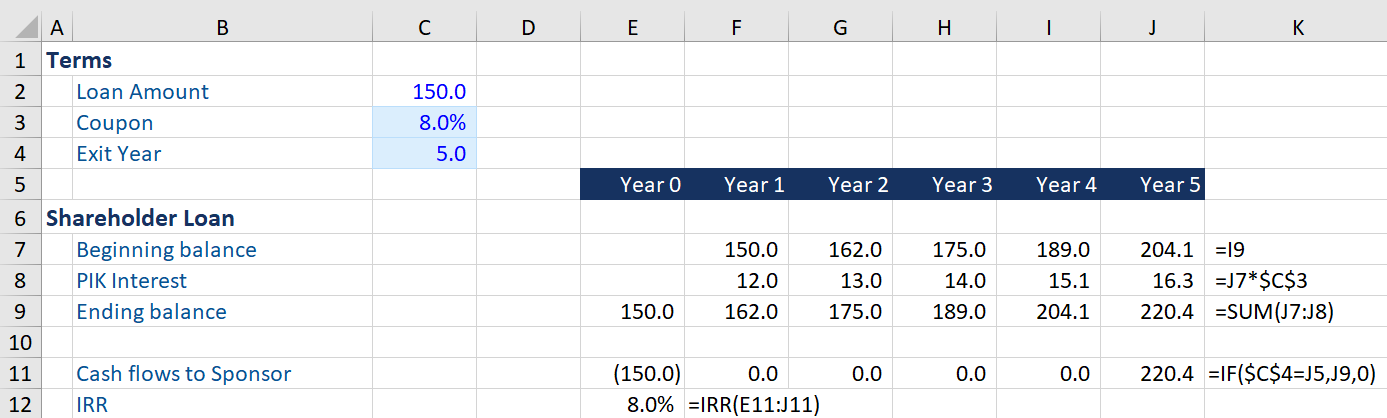 - The loans have a fixed coupon interest rate, often in the form of pay-in-kind (PIK) which functions as a guaranteed rate of return for the sponsor on the deal.
