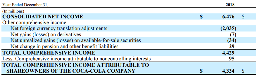 The Coca-Cola Company – Statement of Comprehensive Income 2018